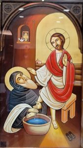 St. Pishoy was also known for his sincere hospitality towards strangers. The Lord, wanting to reward him, visited him and allowed him to wash His feet.